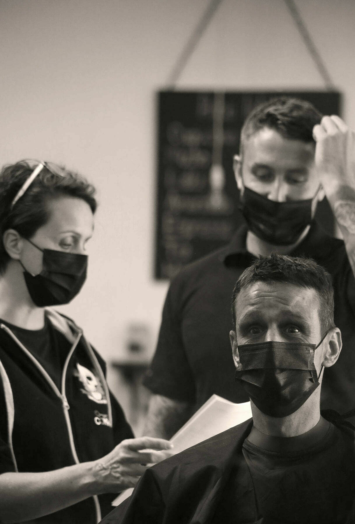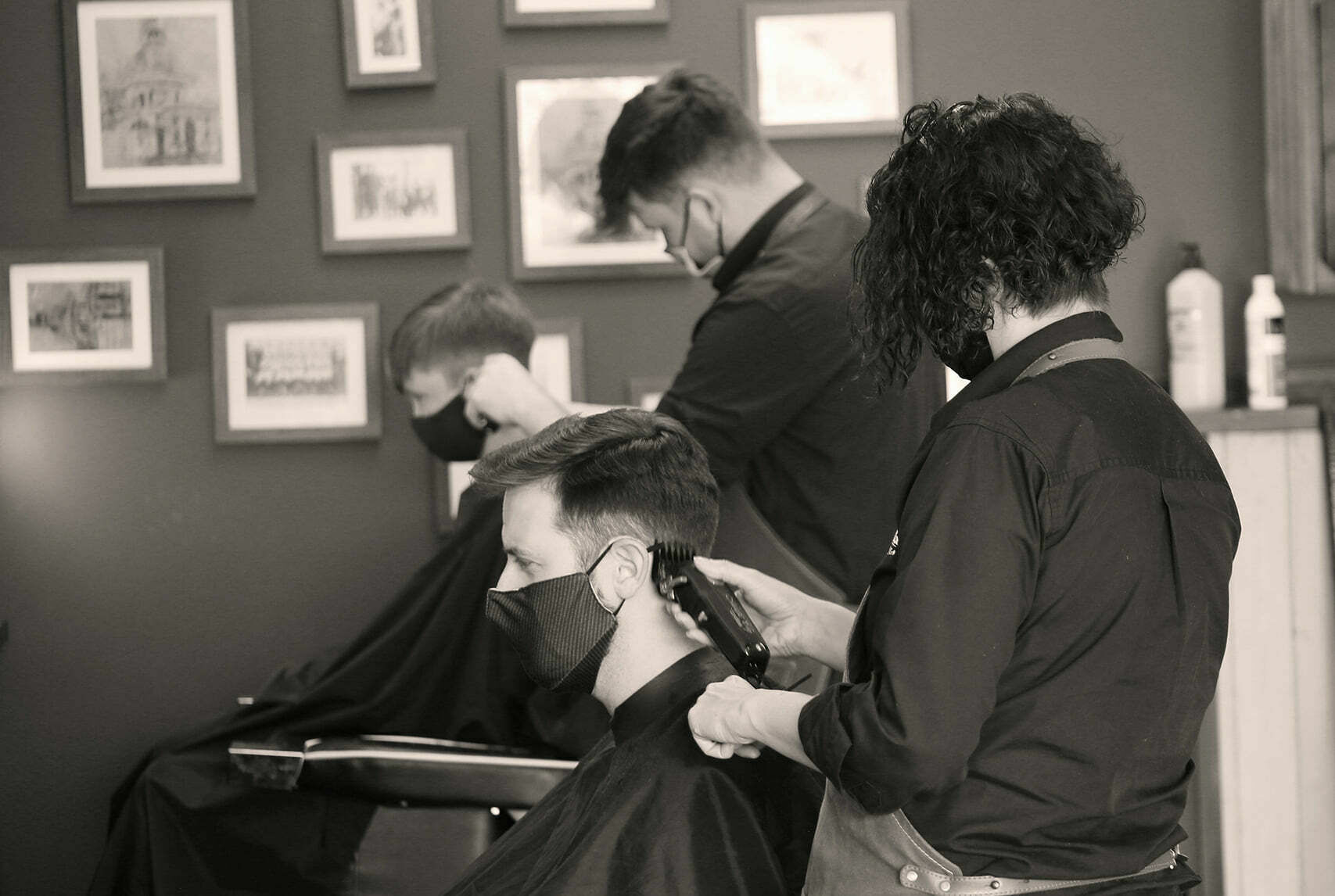 2 sides , pointed sideburns