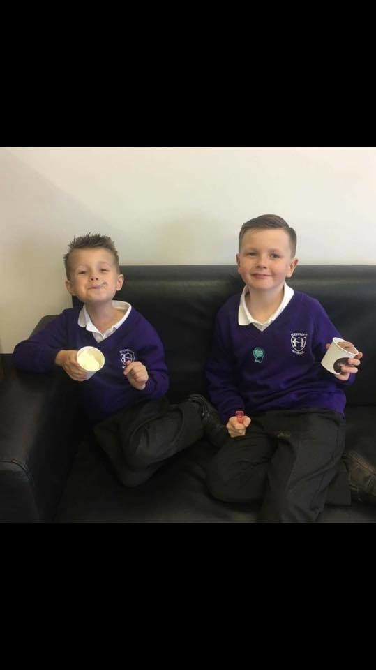 2 happy customers enjoying there Rossi ice cream after being very good boys.